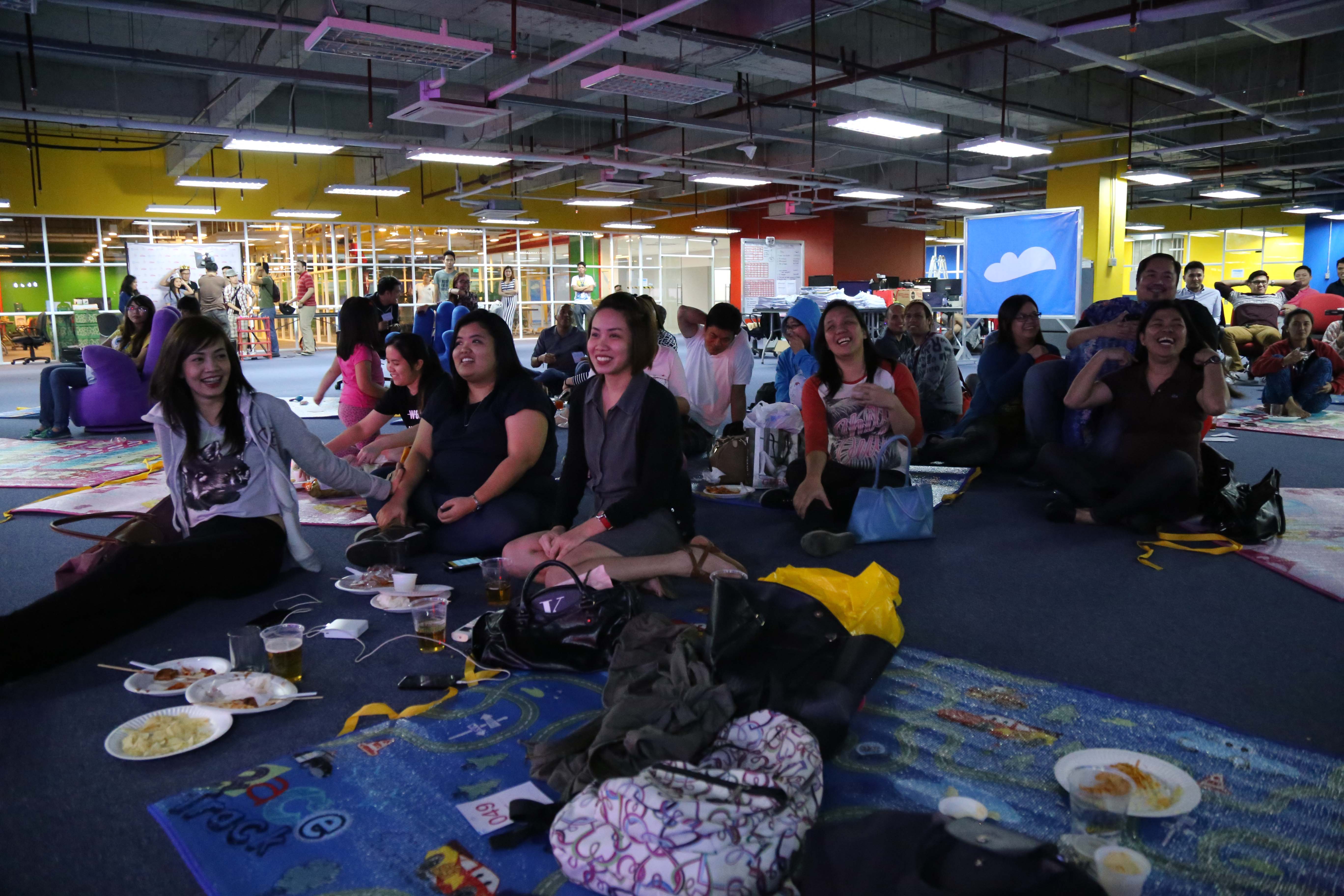 12 February 2016 – Cloudstaffers had a fun and cozy early Valentine’s party as people walked into a very non-traditional set up. Rather than tables and chairs, people were sitting all around on mats; and rather than formal wear, a lot of people came in in their pajamas!